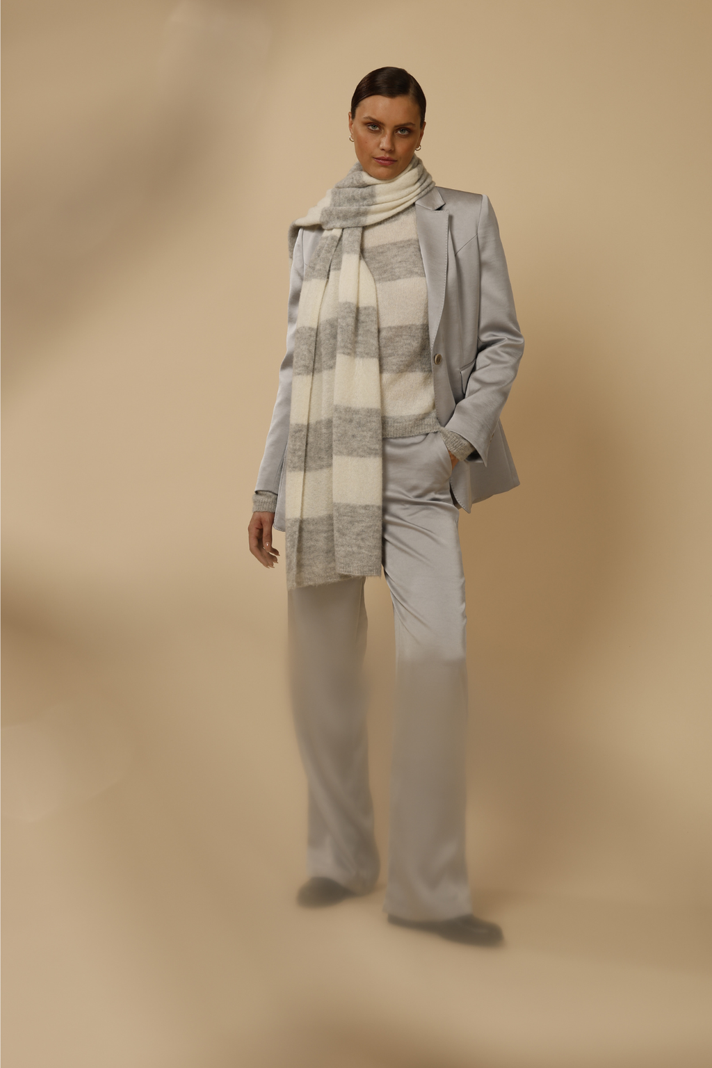The ICE scarf completes the look with effortless harmony. Knitted from the same soft-touch yarn as the SPICE sweater, it features wide horizontal stripes for a cozy yet contemporary feel. Generous in length, it can be wrapped, folded, or draped with ease. It's offering warmth, comfort, and understated style. A perfect companion piece that captures the relaxed sophistication of SCAPA Flow.