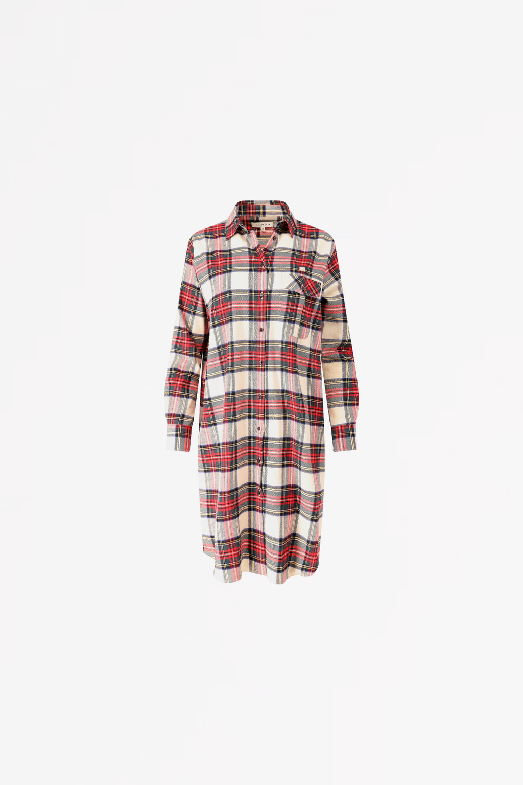 LONG SLEEVE SHIRT DRESS ISPHAR WHITE TARTAN