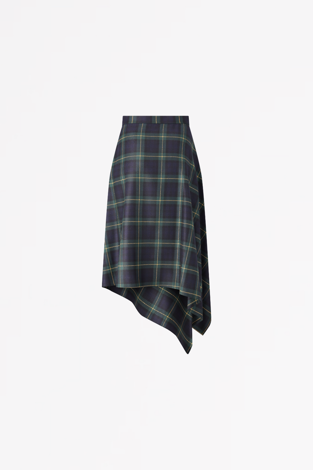A nod to heritage, reimagined for today. The HAILEY skirt is cut from pure wool in a traditional Lindsay tartan, its deep navy tones echoing the landscapes that shaped SCAPA’s story. Draped softly across the front and falling to a mid-calf length, it balances structure with ease — a timeless silhouette that moves with both strength and grace.