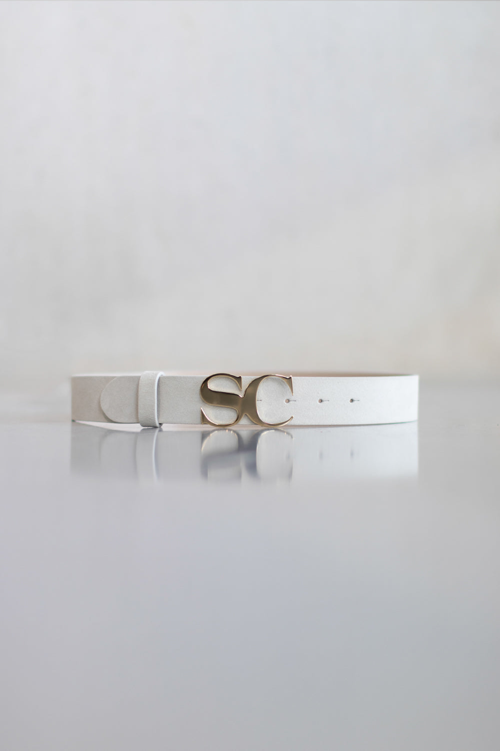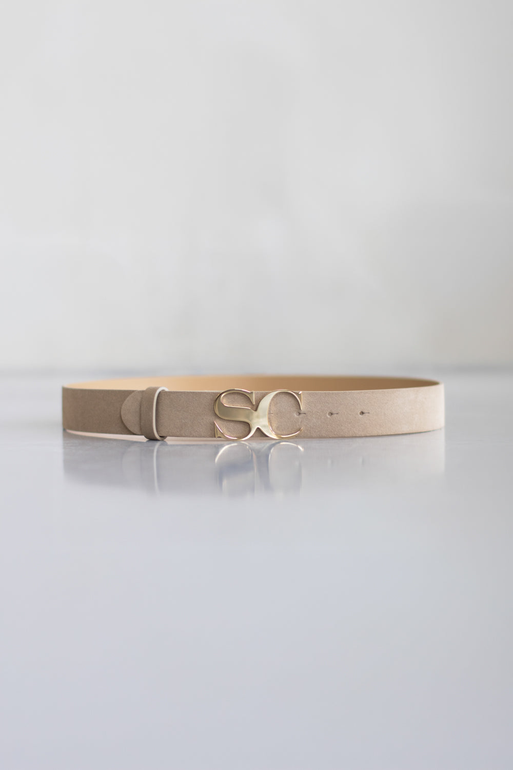 This elegant belt combines minimalist style with a distinctive signature detail. Crafted from soft suede leather, the design features a slim silhouette that adds a refined finishing touch to both casual and dressed-up looks. The polished metal buckle shaped with the iconic SC initials creates a subtle statement while maintaining a sophisticated and modern aesthetic. Perfect for defining the waist or elevating everyday outfits with a hint of luxury.